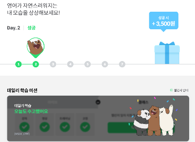일주일간 하루도 빠지지 않고 학습할 때도 보상이 주어지는데,