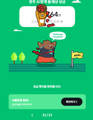 1주 성공 시 3500원이 주어지며, 한 달치가 한꺼번에 통장으로 들어와요.