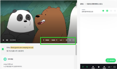 모르는 단어는 옆에 사전을 이용하여 바로 검색 가능해요.2. 콘텐츠 학습