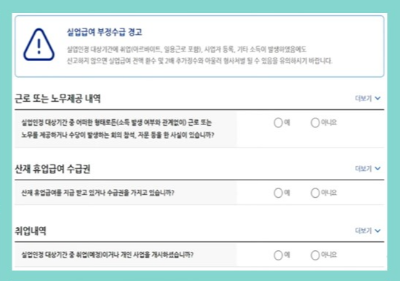실업급여 부정수급 관련 안내문도 꼼꼼히 읽어보시고,