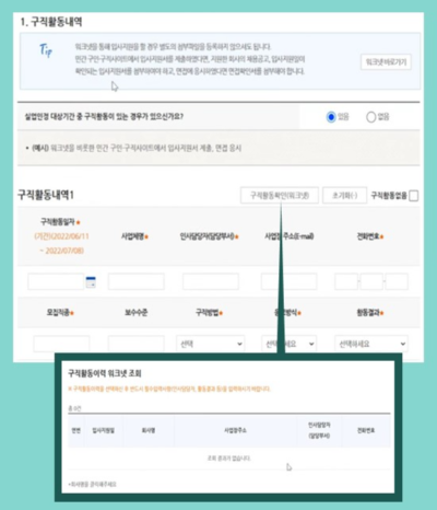 그 다음 구직활동 내용을 직접 기재하거나