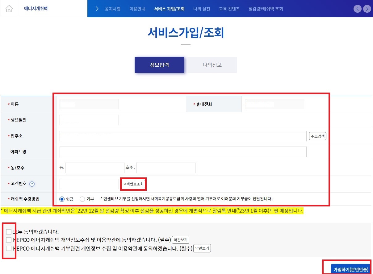 개별세대는, 한전과 약정된 계좌번호로 현금 계좌 이체