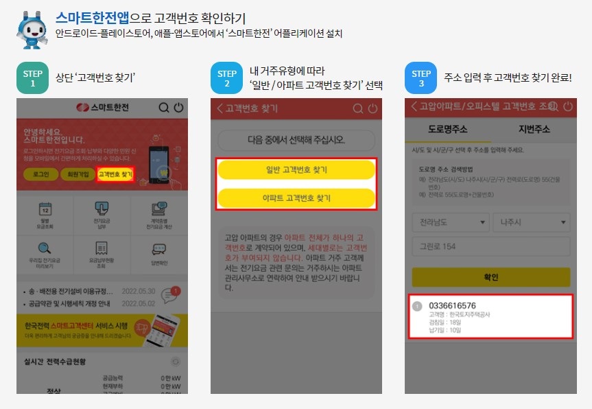 스마트한전에서 조회할 수 있습니다.