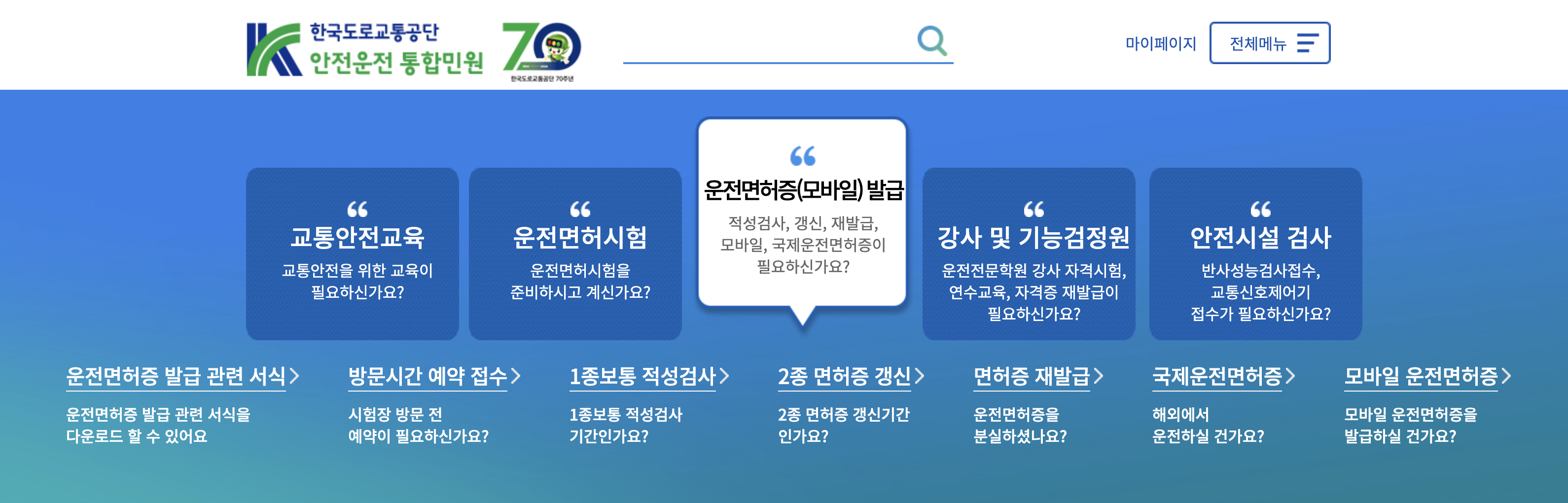 1. 홈페이지 메인 > 운전면허증 발급